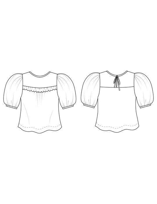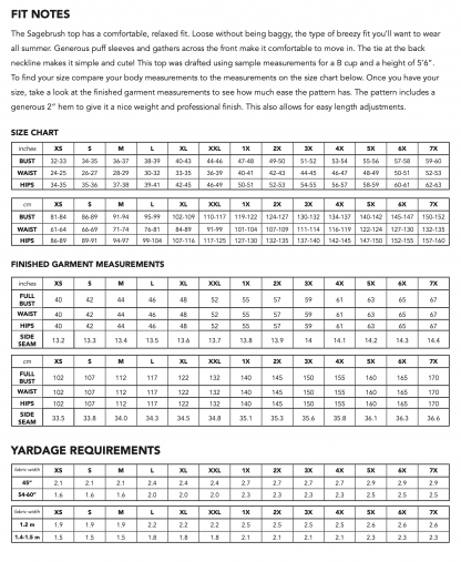"The Sagebrush Top is an elegant and easy-to-sew blouse that is a joy to make and wear. Loose without being baggy, it has the type of breezy fit you’ll want to wear. Generous puff sleeves and gathers across the front make it comfortable to move in. The tie at the back neckline makes it cute! The Sagebrush looks great tucked into something high waisted."