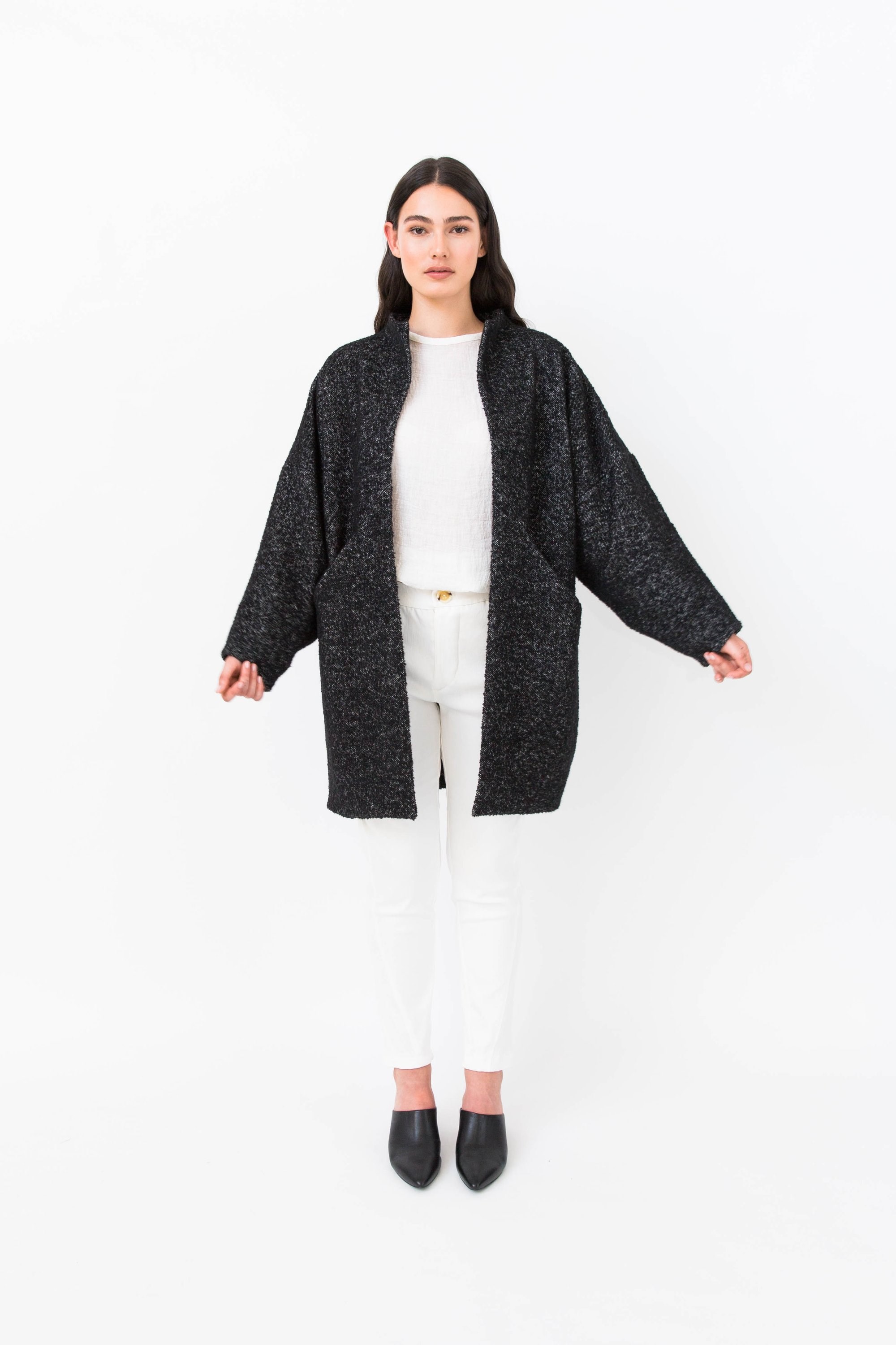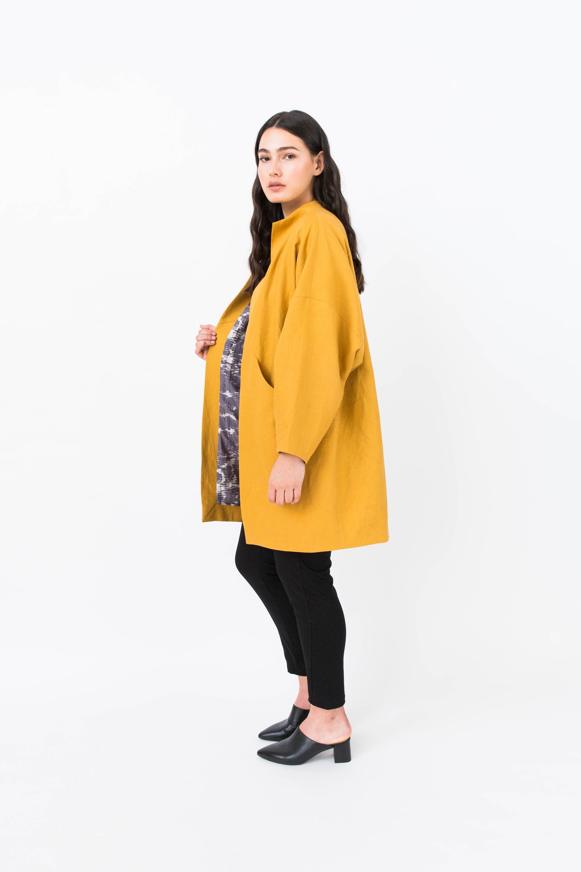 "Go bold with Nova’s dramatic cocoon silhouette and angled seaming. Choose a lightweight fabric for a spring/summer version, or a cosy wool for cooler weather. The fully lined Nova features pockets hidden in the front seams and is a pattern for every season. Choose between cropped or long sleeves, the full length coat or the shorter jacket. It’ll be your fave go-to piece all year round."