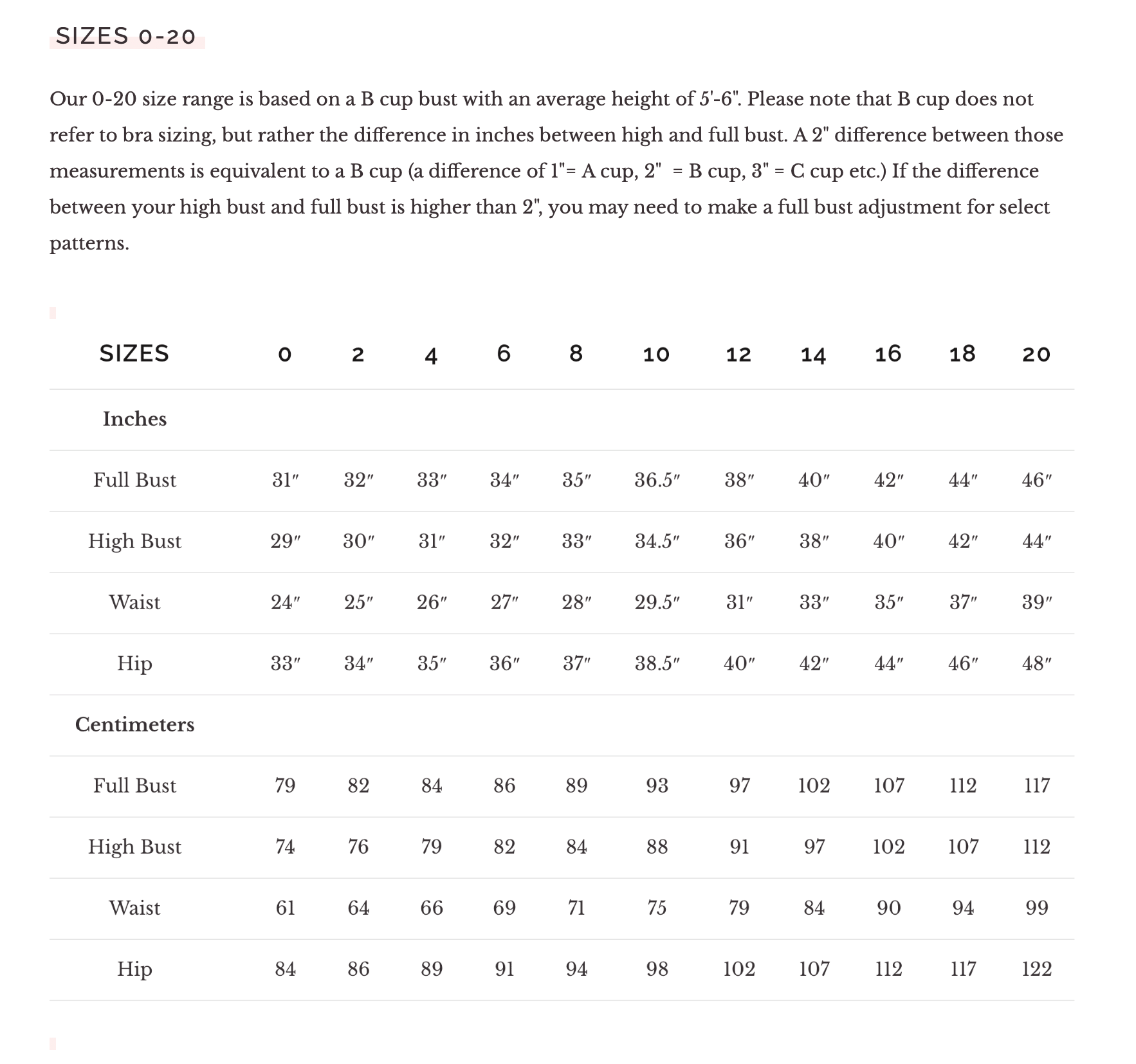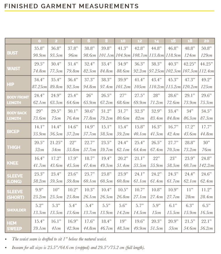 Modellen kommer i størrelserne svarende til XS-XL (US str. 0-20) og der medfølger engelsk syvejledning. Mønsteret er inkl. sømrum.