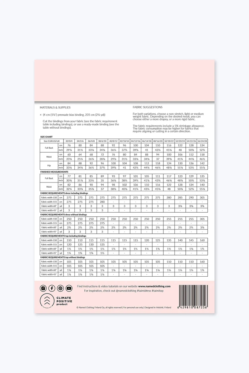 Dette 2-i-1 snitmønster fra finske Named Clothing kommer i størrelserne 32-56, og der medfølger udførlig engelsk syvejledning med illustrationer. Mønsteret er inkl. sømrum.