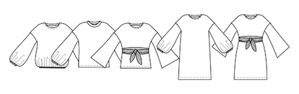 Snitmønster til bluse og kjole med volumniøse ærmer