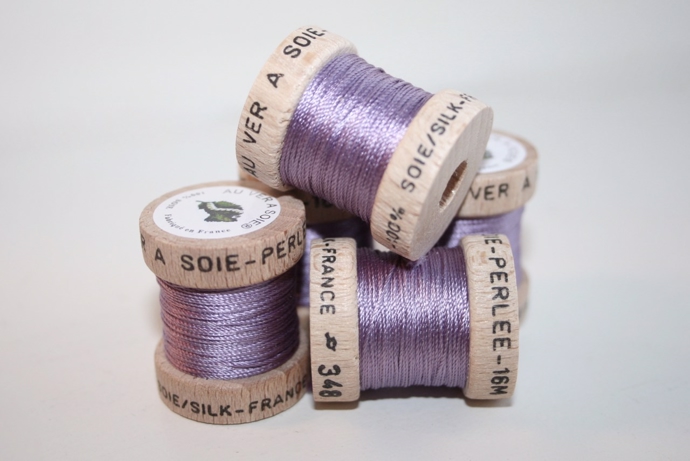 3 trådet knaphulssilke spundet af råsilke af højeste kvalitet på fin cone af træ.