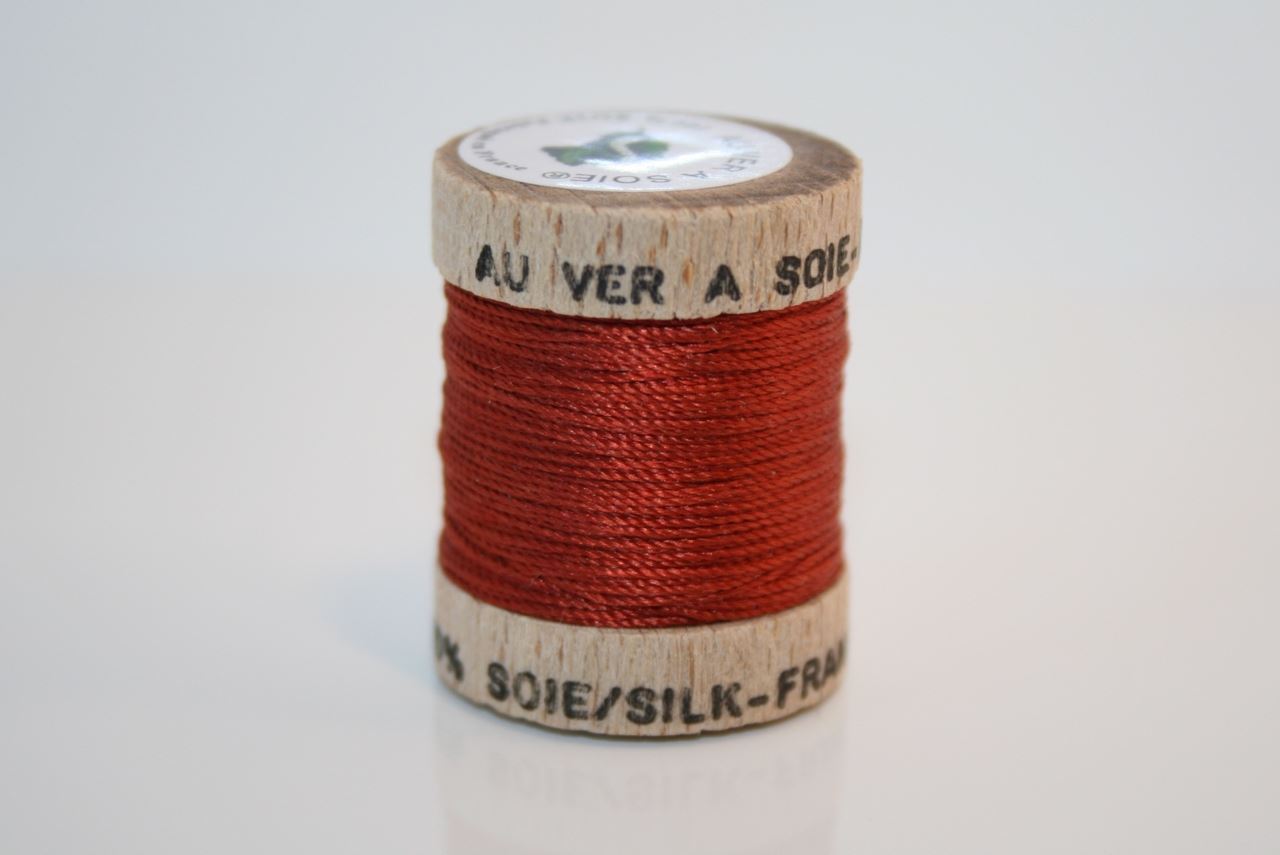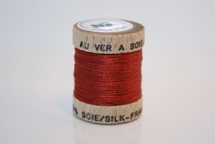3 trådet knaphulssilke spundet af råsilke af højeste kvalitet på fin cone af træ.