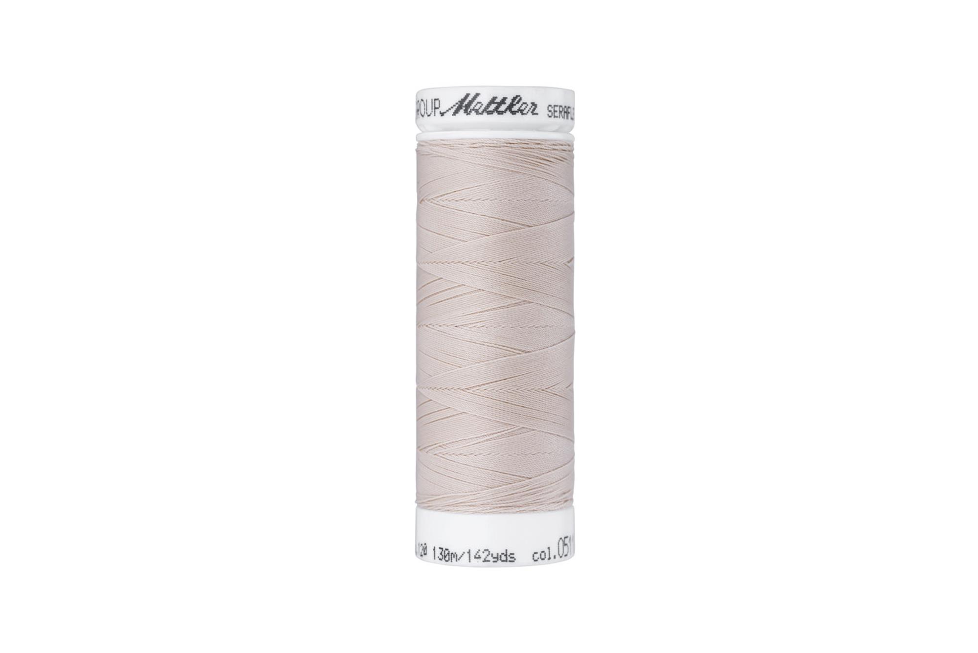 Seraflex er en genial sytråd, der strækker sig med stoffet. På den måde kan du sy oplægninger og halsudskæringer i elastiske stoffer og jersey og undgå, at tråden springer.