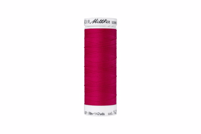 🧵 Brug den i både over- og undertråd - for at opnå maksimal elasticitet, skal du bruge Seraflex både som overtråd og undertråd. Det sikrer en søm, der kan strække sig op til 65 % uden at springe