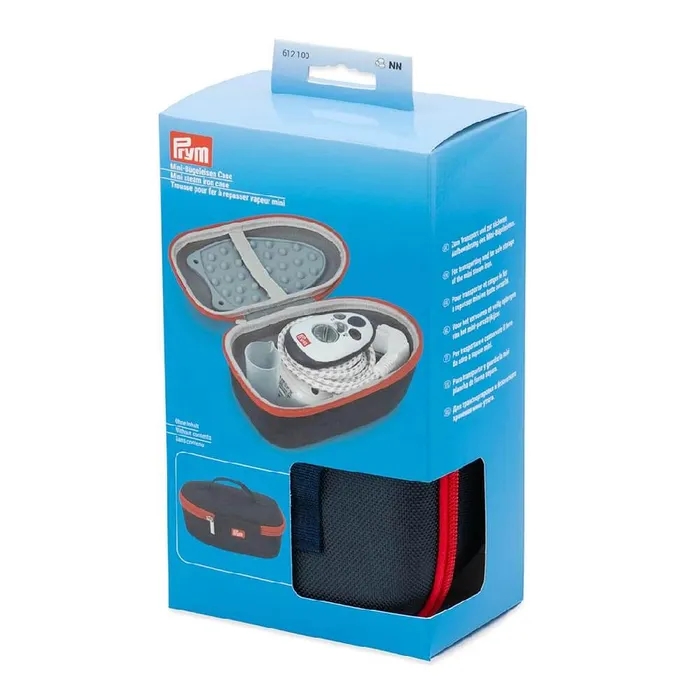 Praktisk taske fra Prym til opbevaring og transport af dit Prym mini dampstrygejern. Boksen er let, men samtidig robust. Den har et blødt foer og elastisk strop, der holder tilbehøret sikkert på plads under transport. Lynlåsen gør det nemt at åbne og lukke tasken, mens det praktiske håndtag på toppen gør den nem at tage med på farten. I tasken er der plads til strygejern, silkonemåtte og lille vandkande til påfyldning af vand. Leveres uden indhold.
