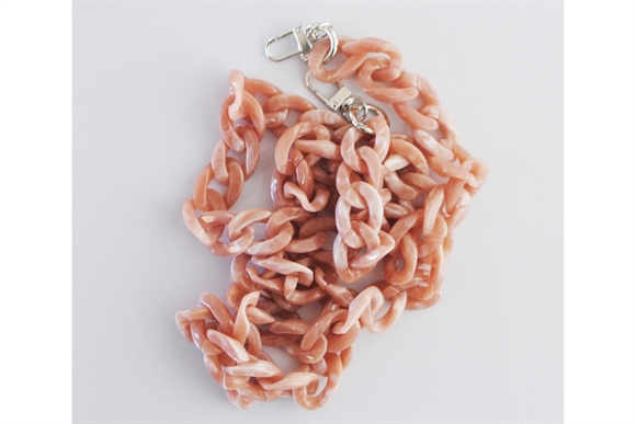 120 cm. taskekæde i laksefarvet med karabinhager for nem montering på små tasker. Kæden er 2 cm. bred.