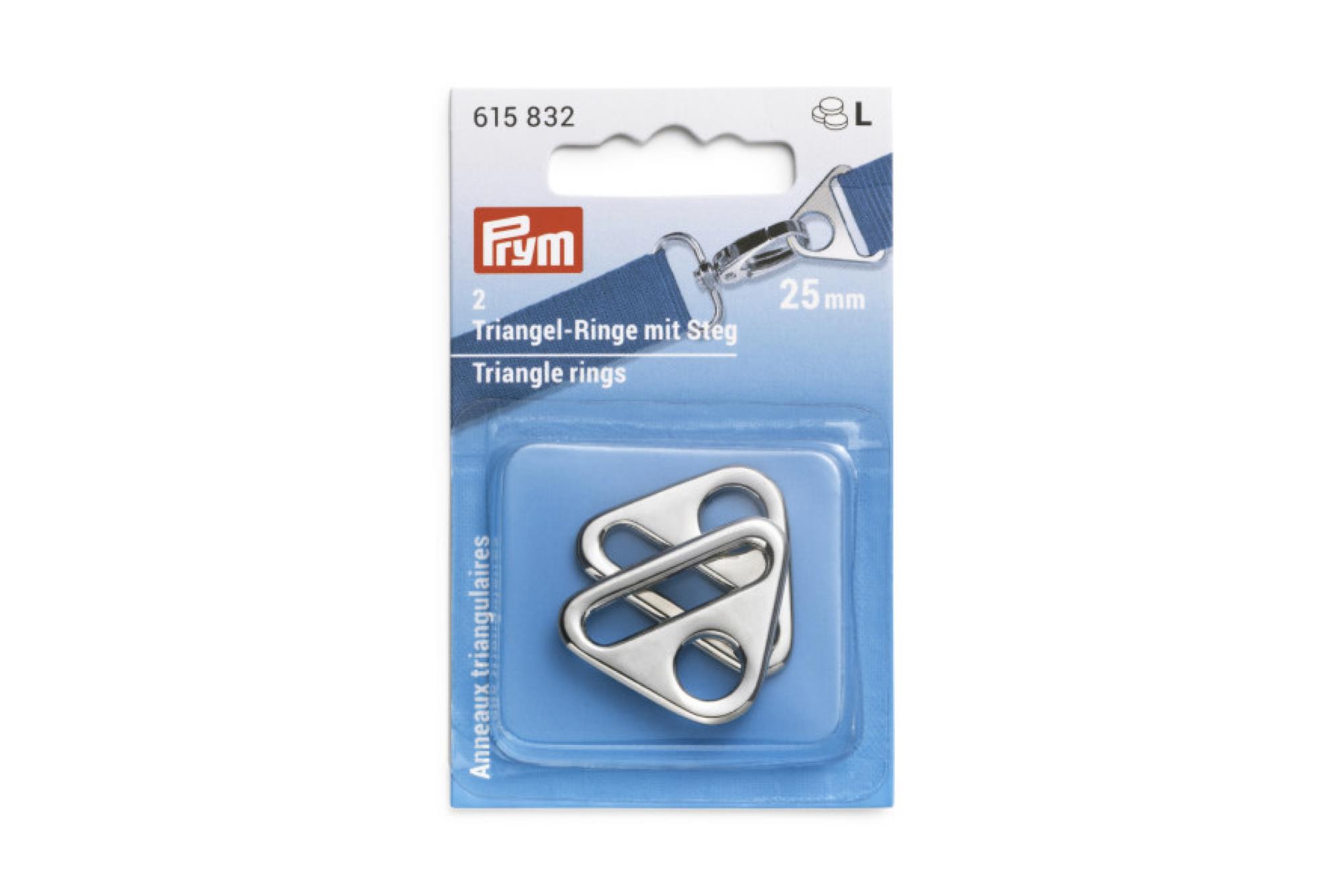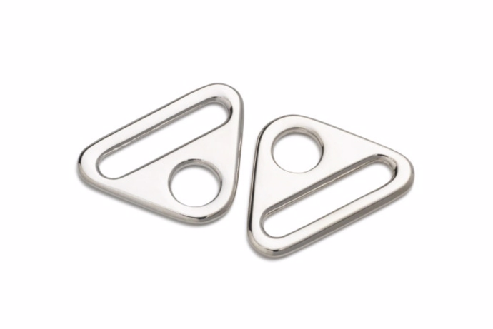 Sølvfarvet trekant ring fra Prym. Ringen passer til 25 mm. remme.
