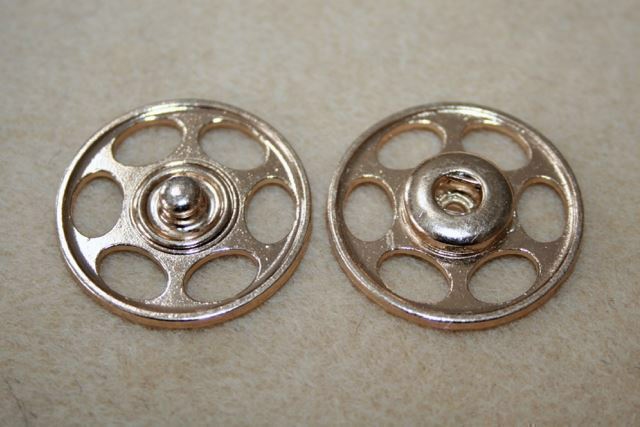 Guldfarvet trykknap 28 mm.