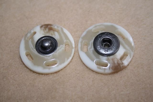 34 mm. trykknap i brun horn