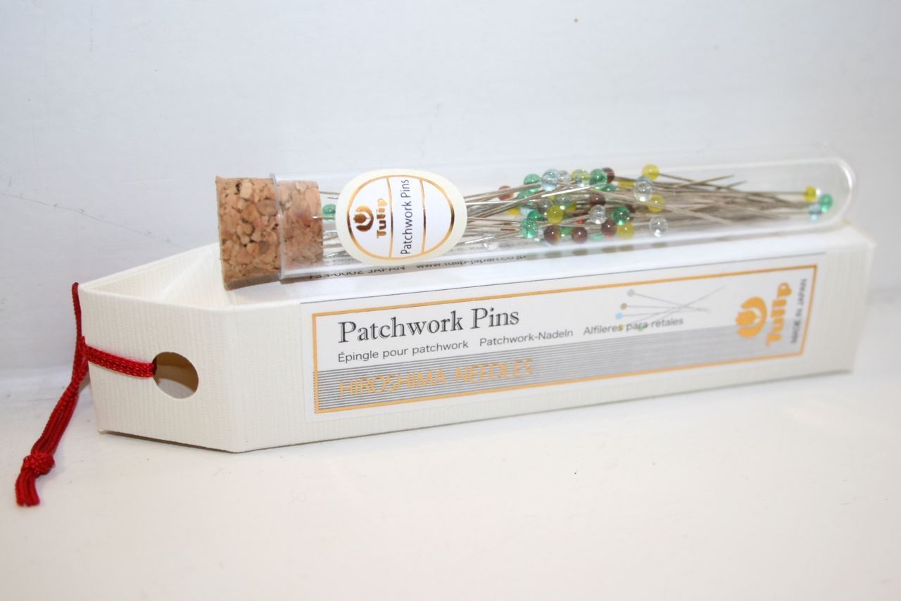 Japanske kvalitetsknappenåle med et fladt tulipanhoved (lavet af cellulose). En lang og skarp knappenål til materialer såsom bomuld og uld. Knappenålene kommer i en skøn plastikampul med korkprop. Ampullen indeholder 15 knappenåle.