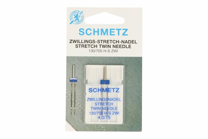 "The Schmetz Stretch Twin needle is a Stretch needle with two needles mounted on one shaft. It has been designed for sewing two simultaneous rows on highly elastic fabrics using standard home sewing machines. Supplied as a blister pack with 1 Twin needle inside a compact plastic box for safe and practical storage"