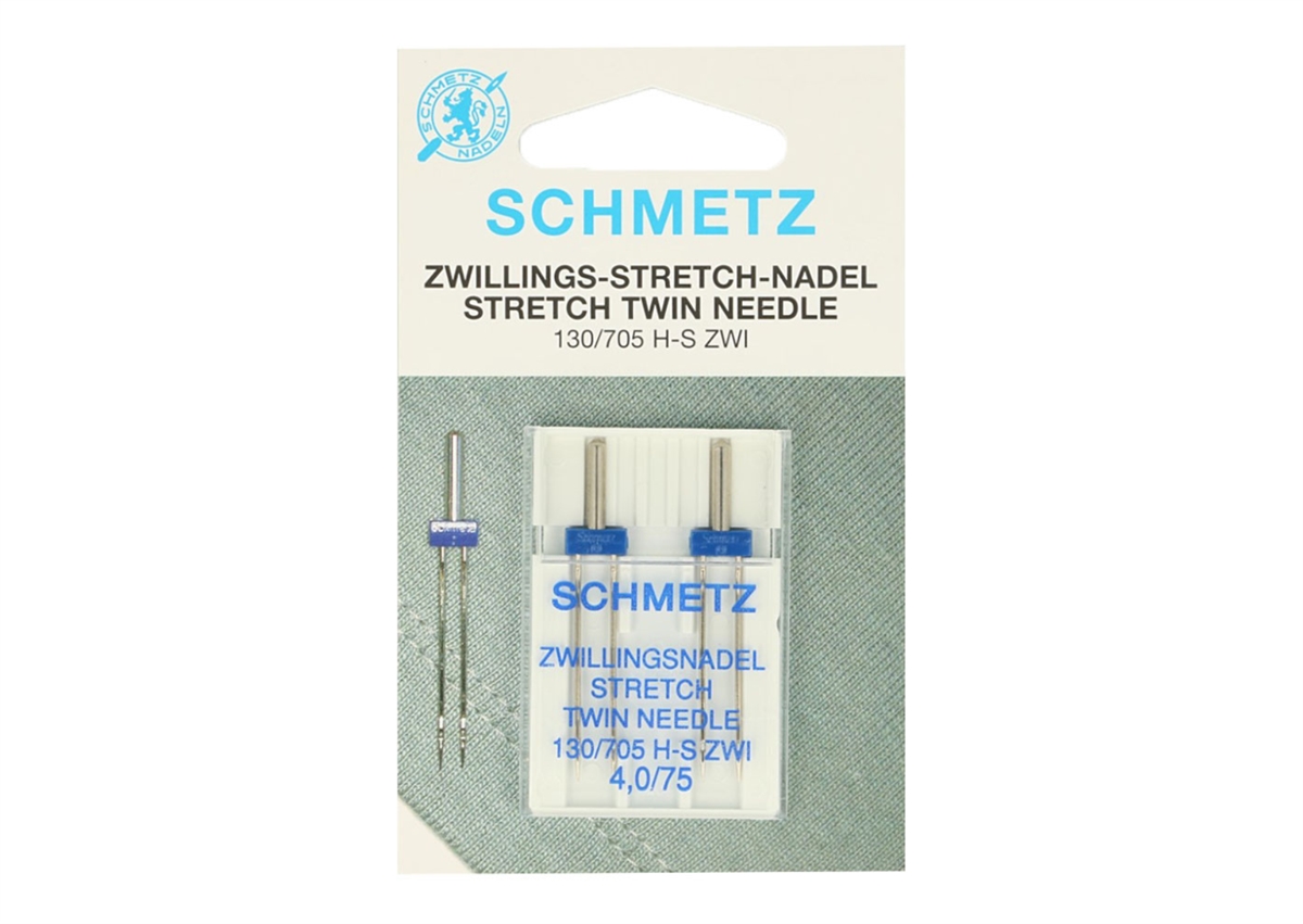 "The Schmetz Stretch Twin needle is a Stretch needle with two needles mounted on one shaft. It has been designed for sewing two simultaneous rows on highly elastic fabrics using standard home sewing machines. Supplied as a blister pack with 2 Twin needles inside a compact plastic box for safe and practical storage"
