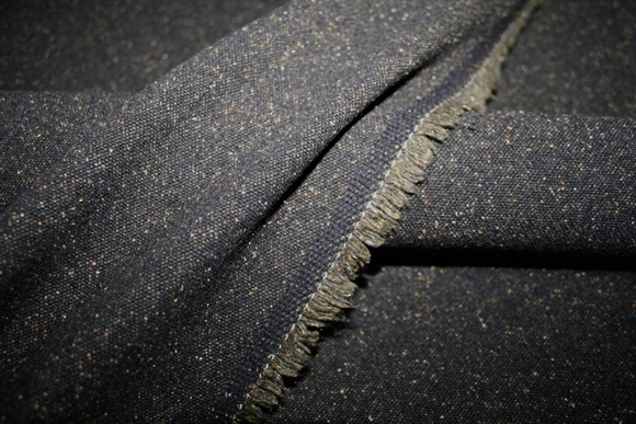 Uldtweed med farvede 'nister'. Stoffet, der er i en medium kraftig og fastvævet kvalitet, er velegnet til såvel lettere overtøj som kjole, bukser og nederdel.