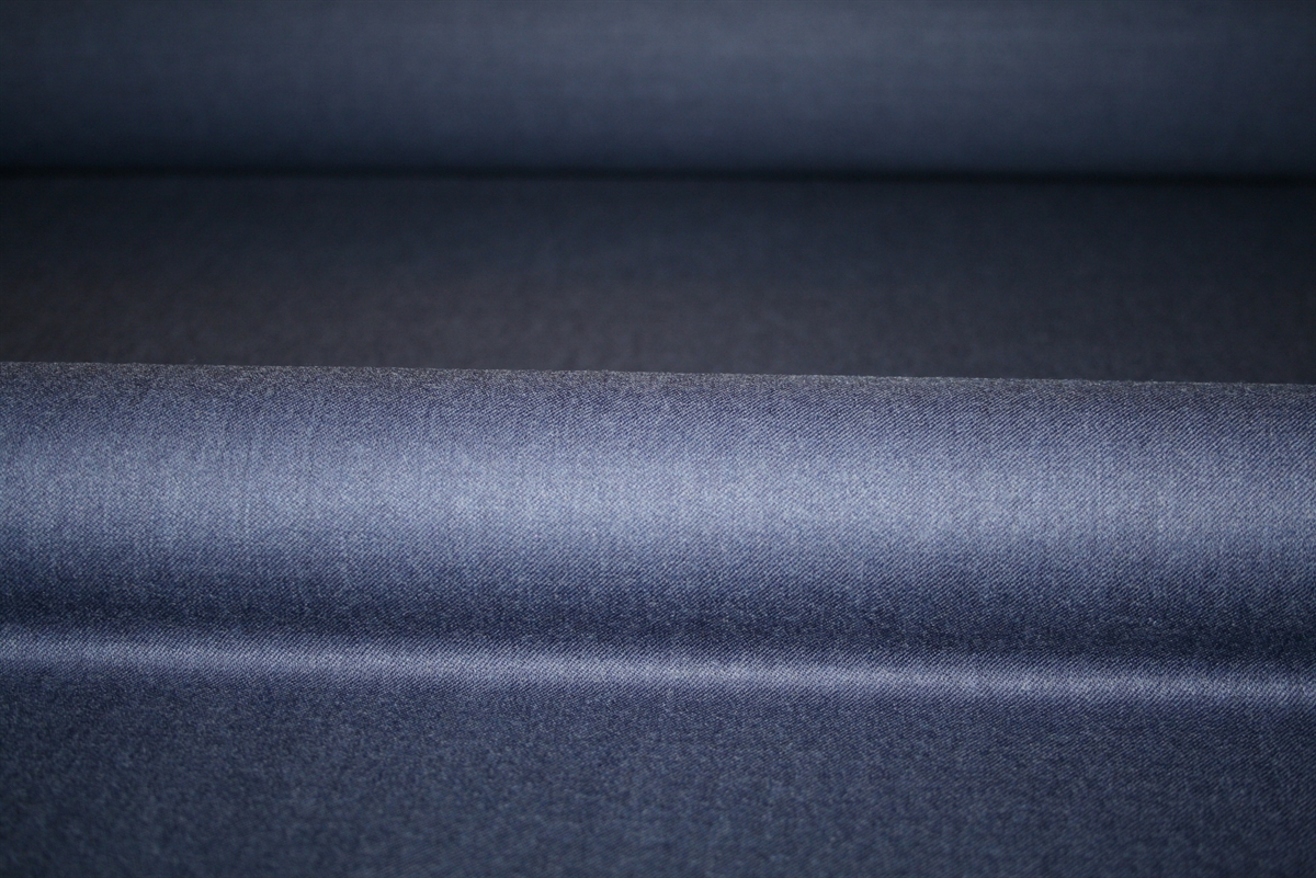 Twillvævet blå melange 100% uld fra Loro Piana. Fantastisk lækker, blød og let-medium kraftig kvalitet. Ulden giver sig en smule på tværs.