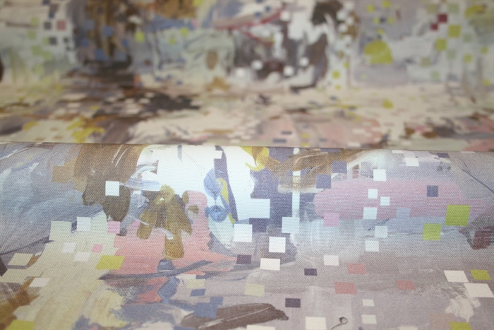 Kanvas i 100% bomuld med abstrakt print. Kvaliteten er fast og medium kraftig. Stoffet er oeko-tex certificeret, dvs. uden skadelig kemi.