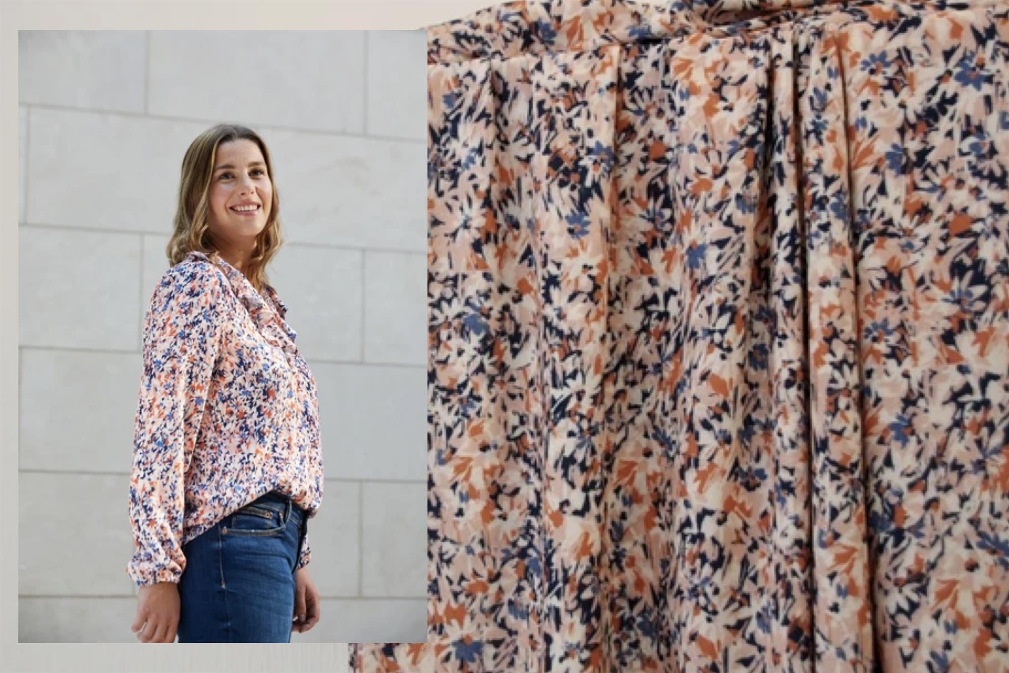 Fastvævet viscose med små blomster på en lyserød baggrund. Kvaliteten er let og tungtfaldende. Stoffet er oeko-tex certificeret, dvs. uden skadelig kemi.
