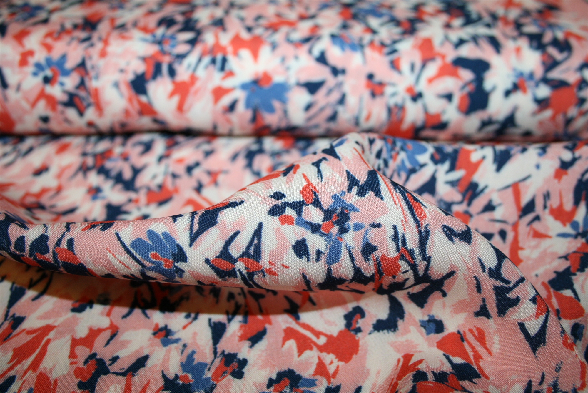 Blomstret viscose stof \'Pink Flower\'Blomstret viscose stof \'Pink Flower\'