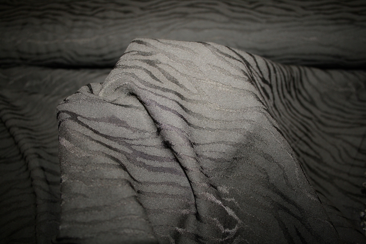 Jacquardvævet viscose med tigerstriber. Kvaliteten er let-medium kraftig.