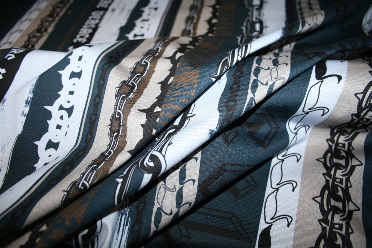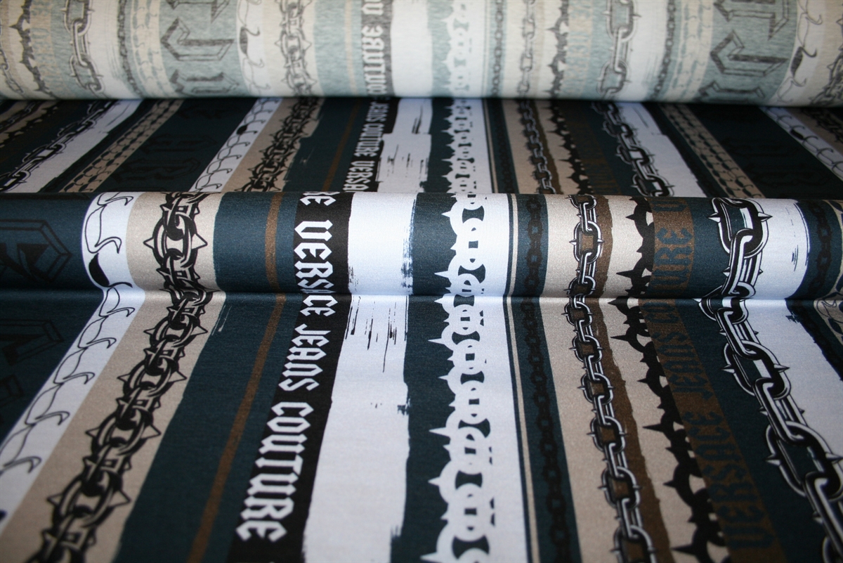 Let bomulds jersey med cool print i lodret forløb. Stoffet er produceret for Versace.