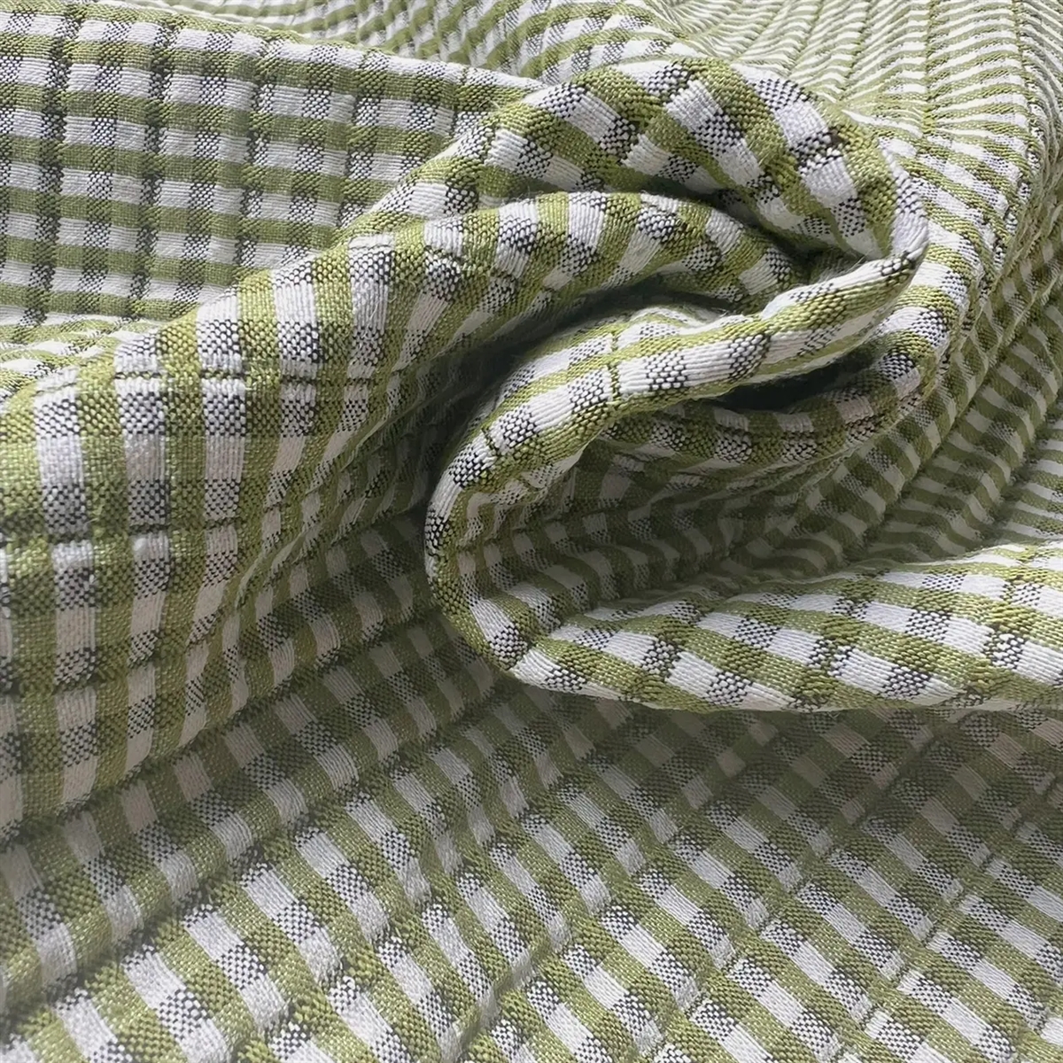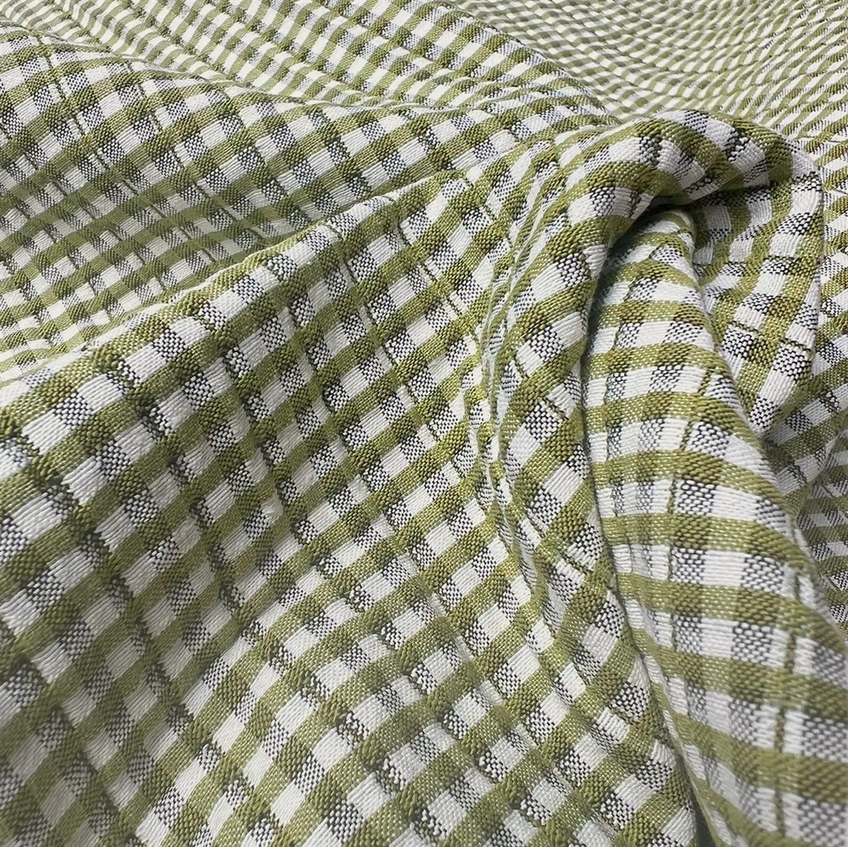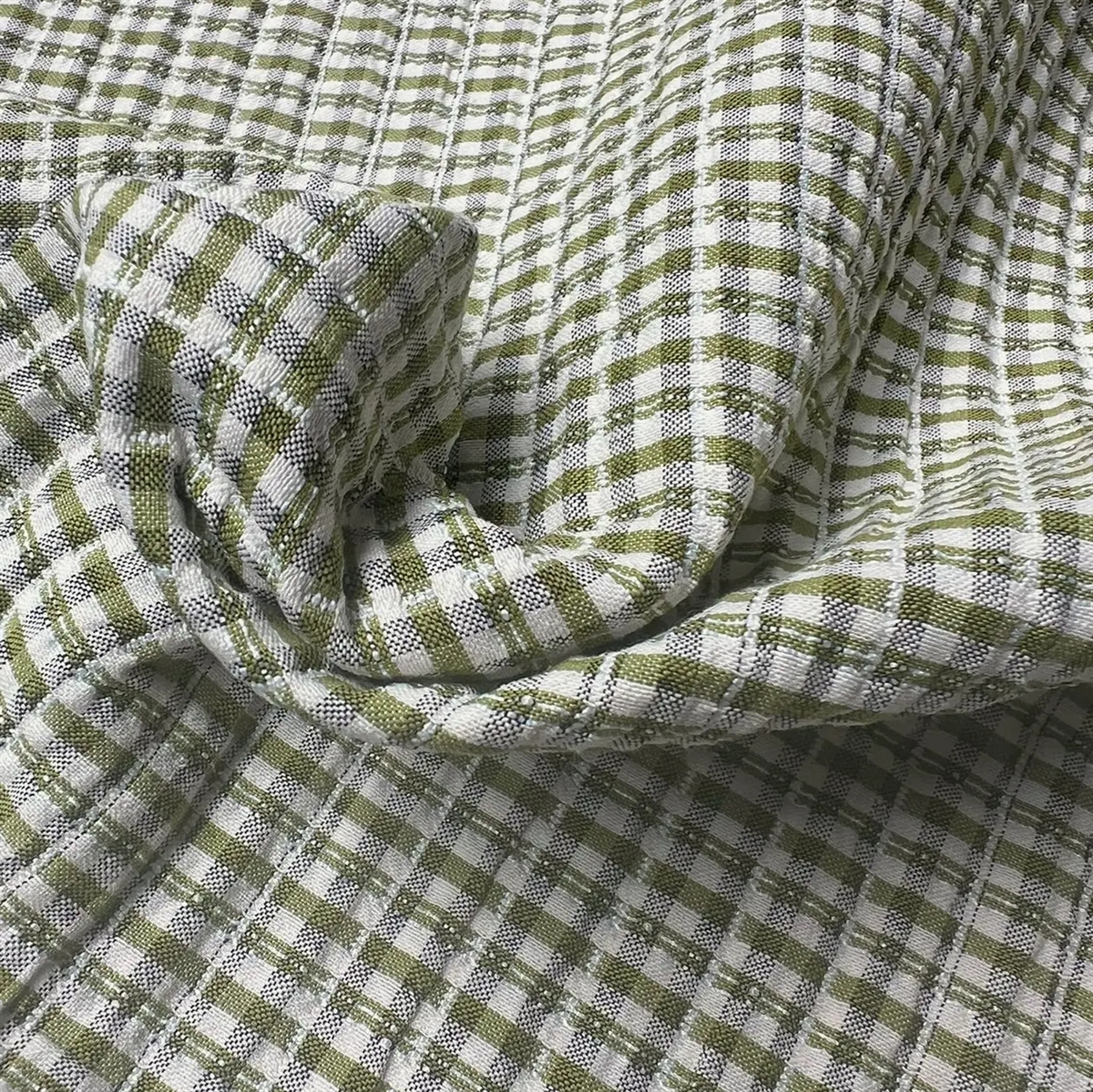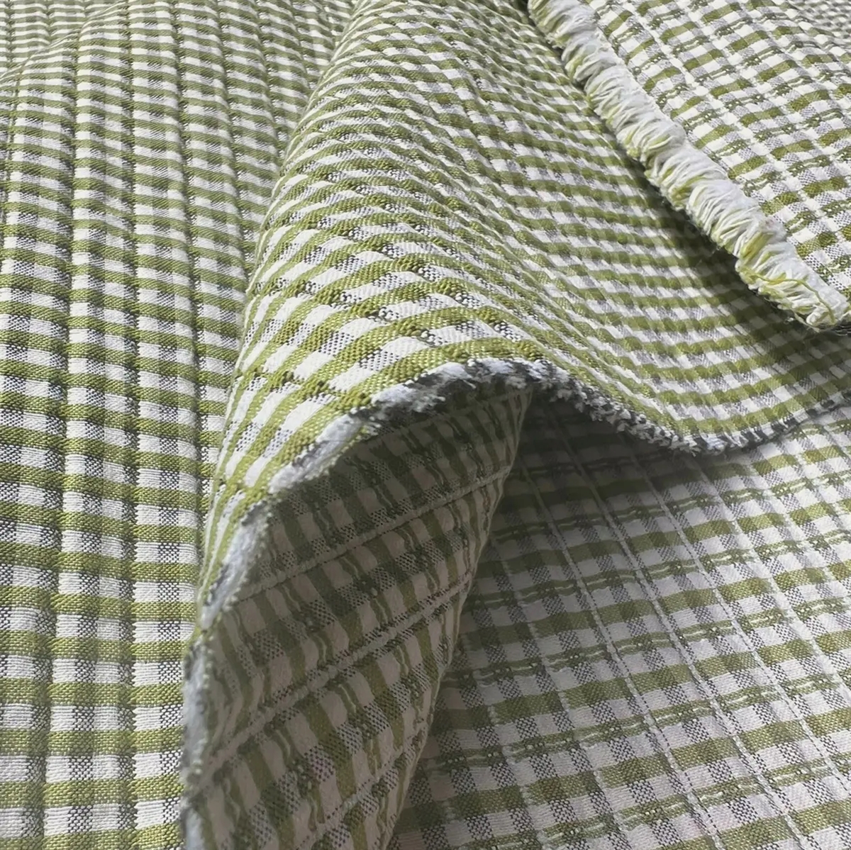Quiltet stof med kiwigrønt tern-mønster. Stoffet kan bruges på begge sider. Ideel til at sy en lille jakke eller sweater. Stoffet er oeko-tex certificeret.