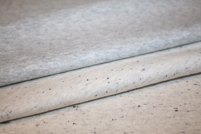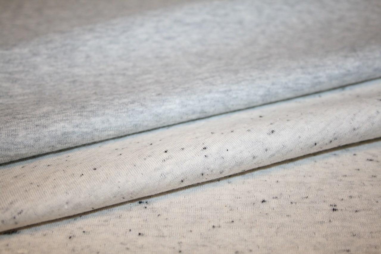 Blød dobbeltsidet viscose jersey. Stoffet er nistret lysegrå på den ene side og meleret lysegrå på den anden.