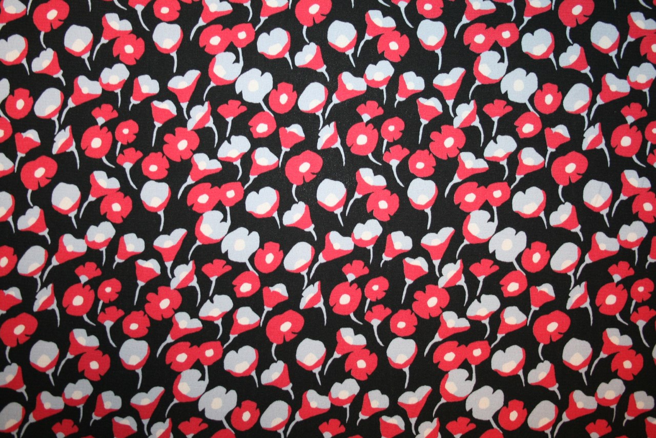Fastvævet viscose crepe med blomster på en sort bund. Kvaliteten er let og lækker. Stoffet er produceret for Aspesi.