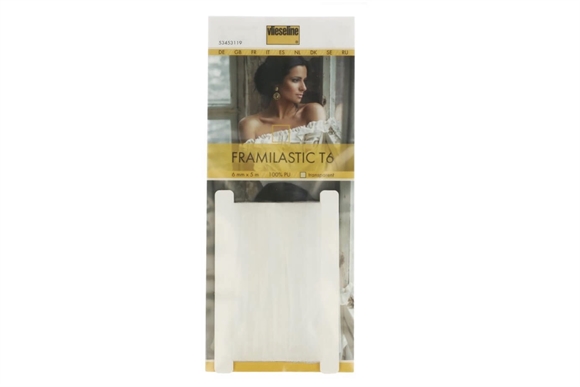 "Vlieseline Framilastic is a transparent, sew-in tape with very high elasticity. This type of elastic tape is also known as 'framilon'. Ideal for reinforcing shoulder seams or finishing necks or hems in stretchy clothing (such as tricot) - think of lingerie, underwear, sportswear and swimwear (Framilastic is highly resistant to chlorine). It is also very useful for all kinds of fabric treatments, such as ripples, gathering or ruffles. Suitable for all (including transparent) fabrics. The tape is made from transparent polyurethane and is washable up to 40°C (we do not recommend using fabric softener)."