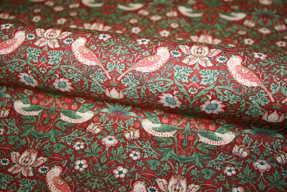 William Morris stof \'Mini Strawberry Thief Wine\'