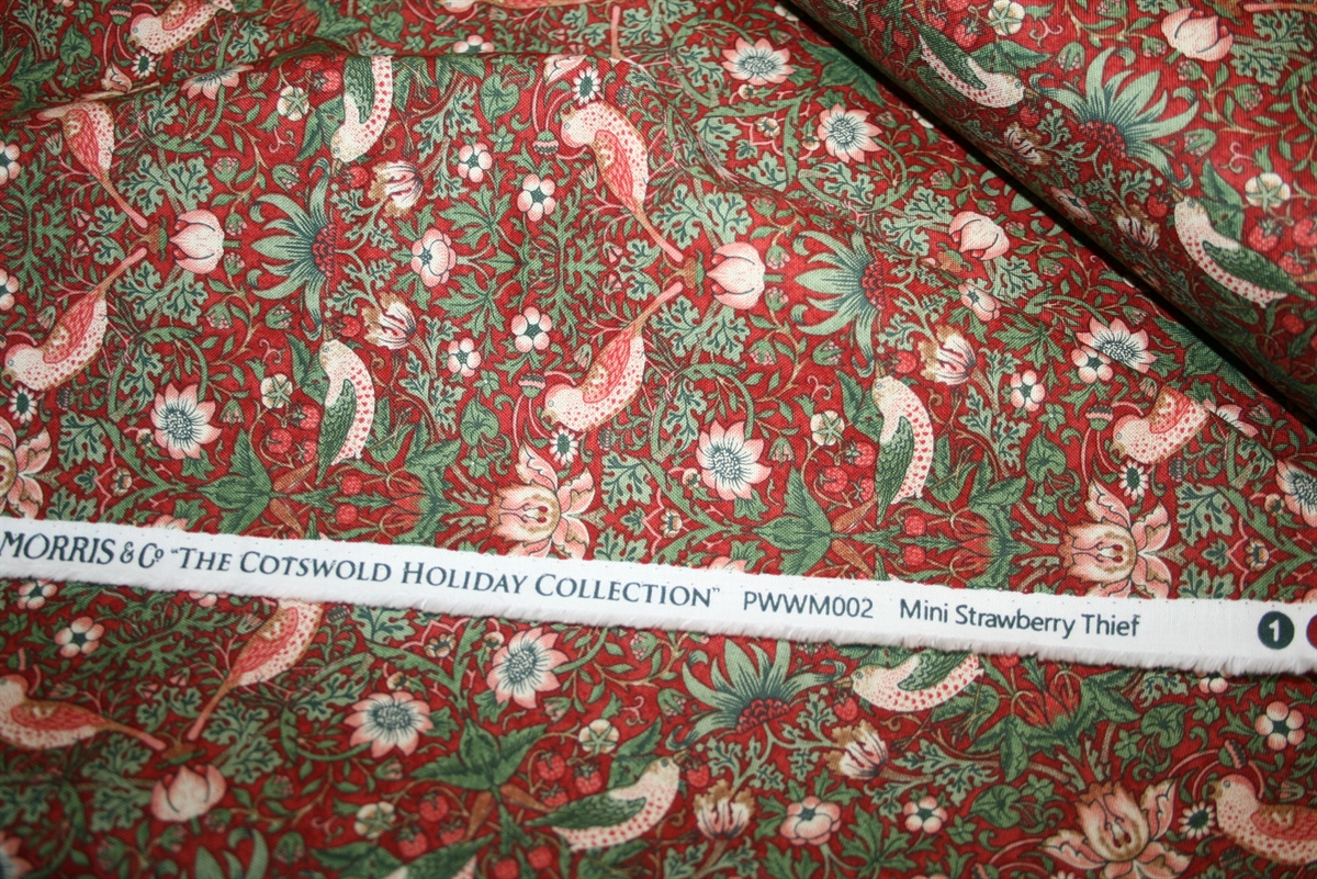 100% bomuld med ikonisk print af William Morris. Kvaliteten er fastvævet og medium kraftig. Printet er en del af julekollektionen 'The Cotswold Holiday'.