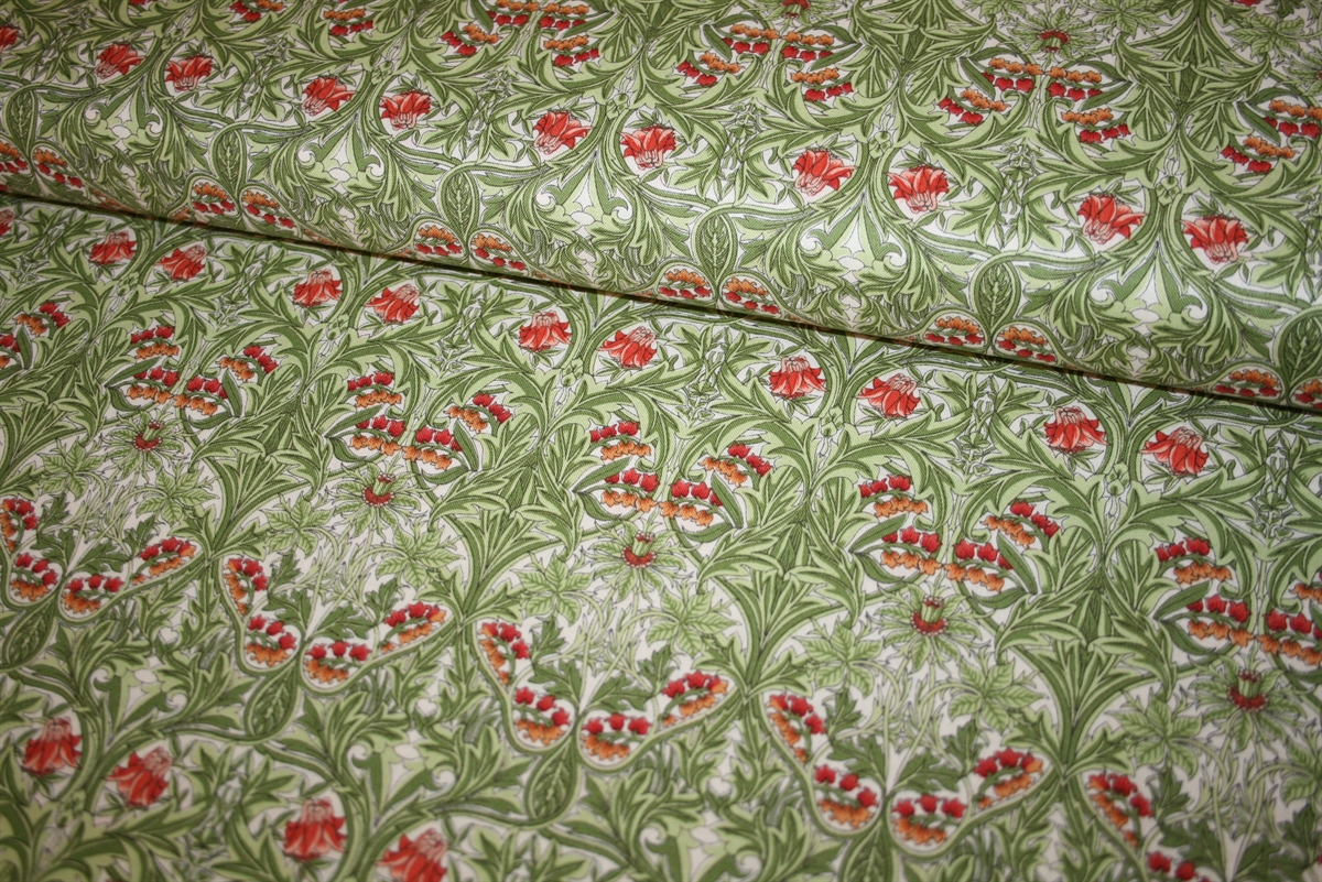 William Morris' tidløse designs passer smukt ind i den nordiske stil. Farvepaletten er rig, men alligevel afdæmpet og nøje afbalanceret. Mønstre og former er inspireret af naturen. Motiverne er ofte organiske og gentages symmetrisk. Gør dine syprojekter til små kunstværker.