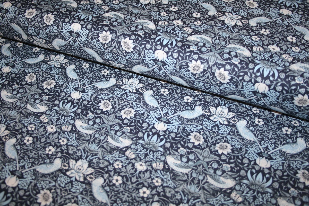 William Morris bomuld \'Mini Strawberry Thief Indigo\'