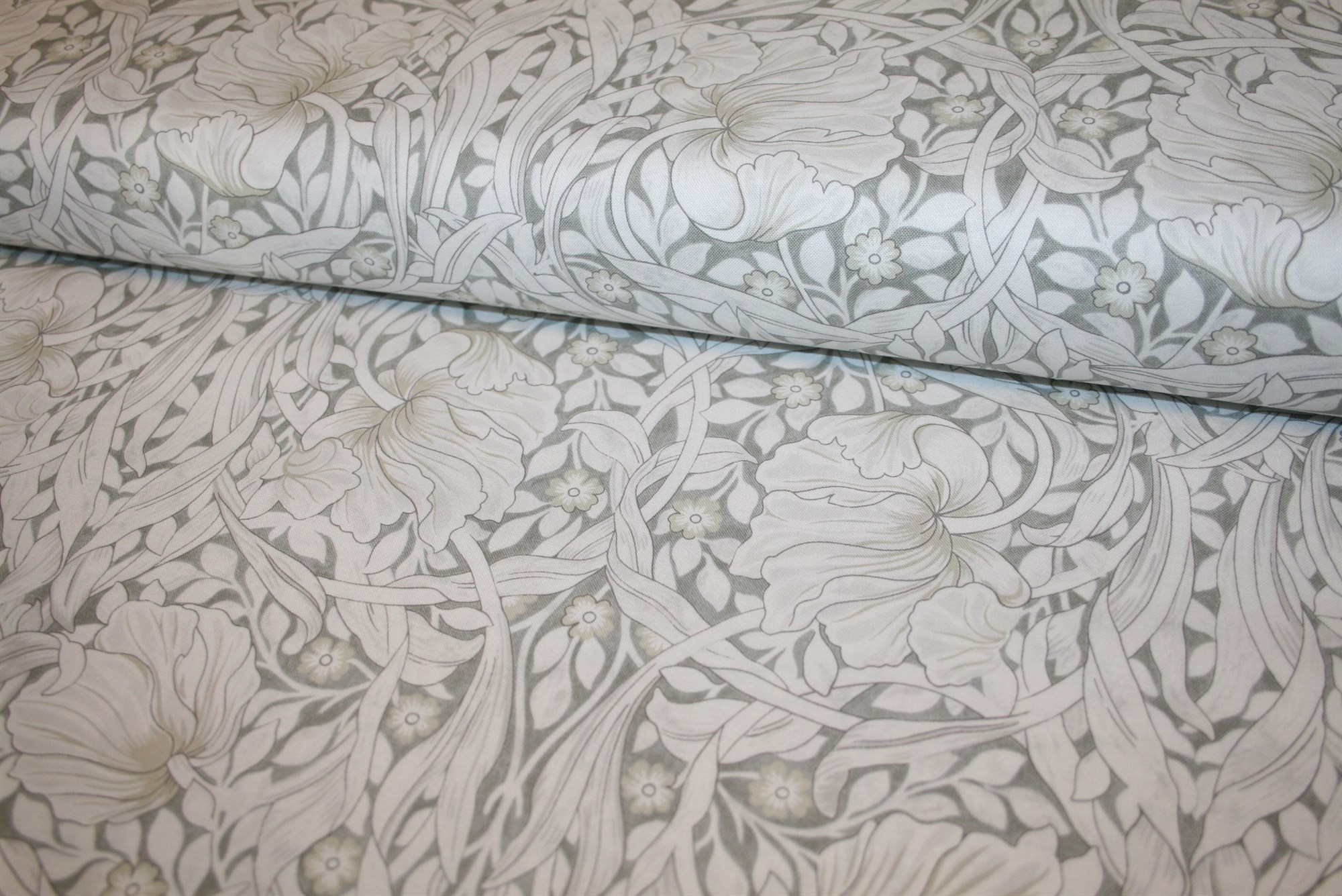 Det ikoniske Pimpernel-mønster er designet af William Morris i 1876. Pimpernel er kendt for sine symmetriske tulipanblade og blomster i en grafisk, moderne stil, der afspejler Morris' kærlighed til naturens organiske former. Denne version i Dove præsenterer et afdæmpet farvespil i grå og beige nuancer, hvilket giver stoffet et tidløst og sofistikeret udtryk. Stoffet er 100% bomuld og kan derfor bruges til en bred vifte af syprojekter, herunder beklædning, boligtekstiler og patchwork.