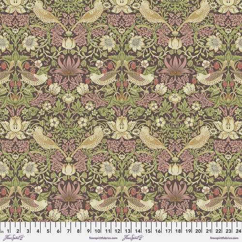 100% bomuld med ikonisk print af jordbær-stjælende fugle designet af William Morris. Kvaliteten er fastvævet og medium kraftig.