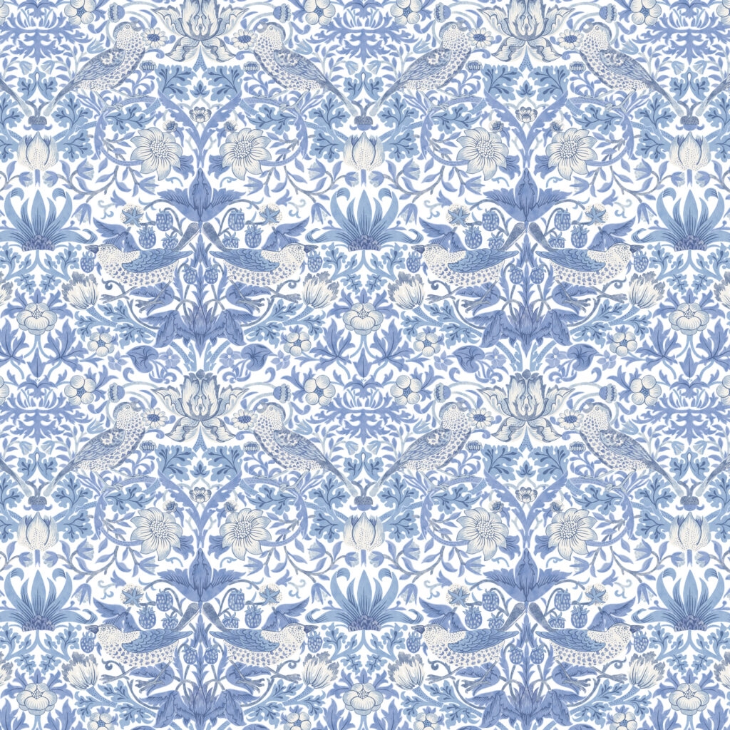 William Morris stof \'Strawberry Thief Light Blue\'