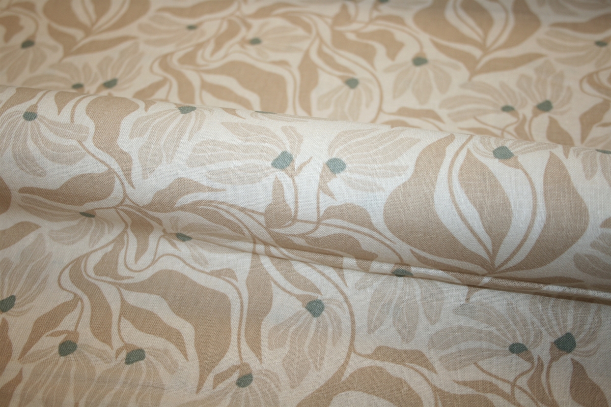 Hør -og bomuldsblanding med botanisk print i beige og sand