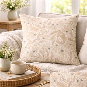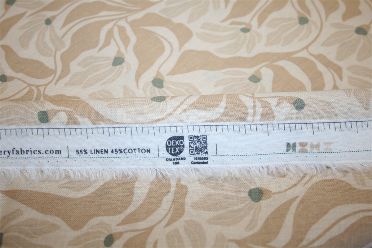 Hør -og bomuldsblanding med botanisk print i beige og sandHør -og bomuldsblanding med botanisk print i beige og sandHør -og bomuldsblanding med botanisk print i beige og sand