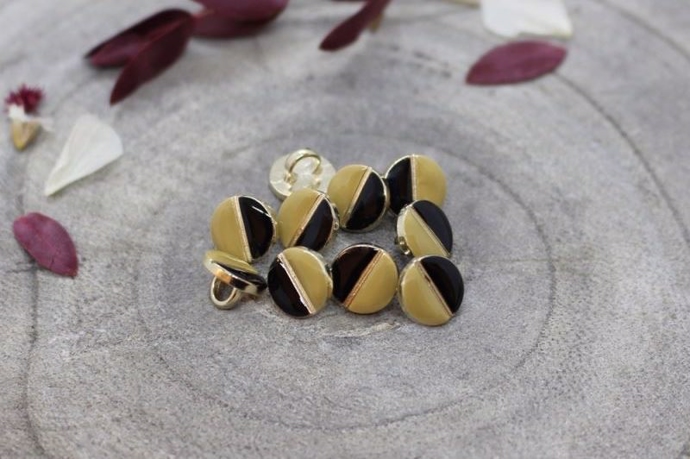 9 mm. sort/mustard øjeknap i guldramme (Oeko-tex certificeret).