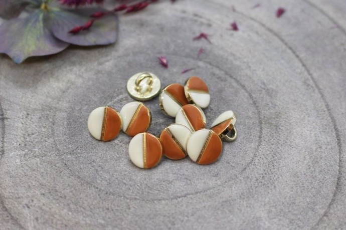 9 mm. offwhite/rødbrun øjeknap i guldramme (Oeko-tex certificeret).