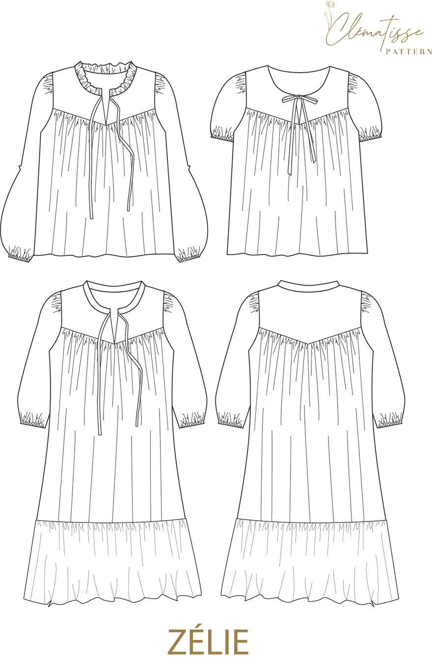 'Zélie' bluse og kjole symønster